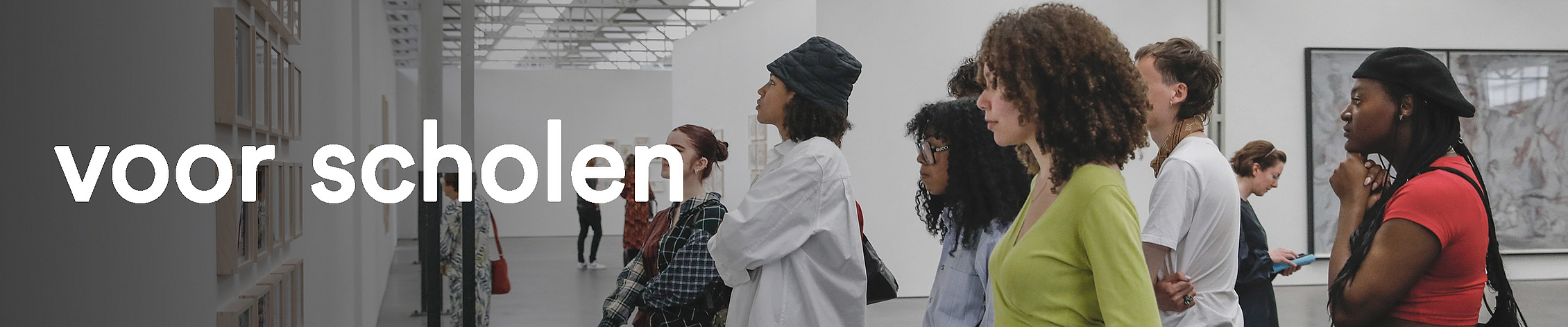 In een rondleiding voor VO-leerlingen staat de ontmoeting met de wereld van de kunstenaar centraal. De rondleider prikkelt en stuurt de leerlingen om goed te kijken, te reflecteren en in gesprek te gaan over wat ze zien. Op die manier onderzoekt de groep samen het kunstwerk: wat zou de kunstenaar willen zeggen? Wat betekent dat in deze wereld? Wat vind ik daarvan, en waarom ziet mijn klasgenoot dat eigenlijk helemaal anders? Er is bij het aanvragen ruimte om aan te geven extra aandacht te besteden aan specifieke tentoonstellingen, kunstenaars of (eindexamen)thema’s bijvoorbeeld.